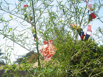↑7/7:うちの庭にある笹をカットして飾り付け!ルーミーと七夕を祝いました。こちらはマンベンの晴れでした!織り姫と彦星も会えたようです。