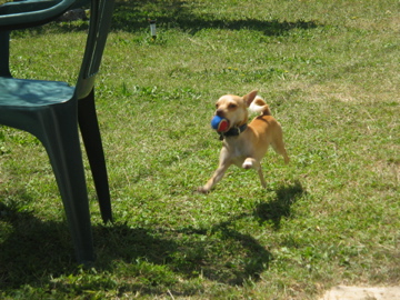 ↑ボールで遊ぶギズモ。おもちゃ大スキ!